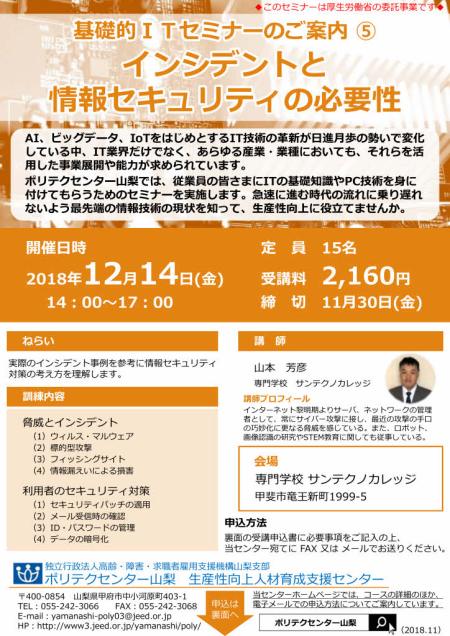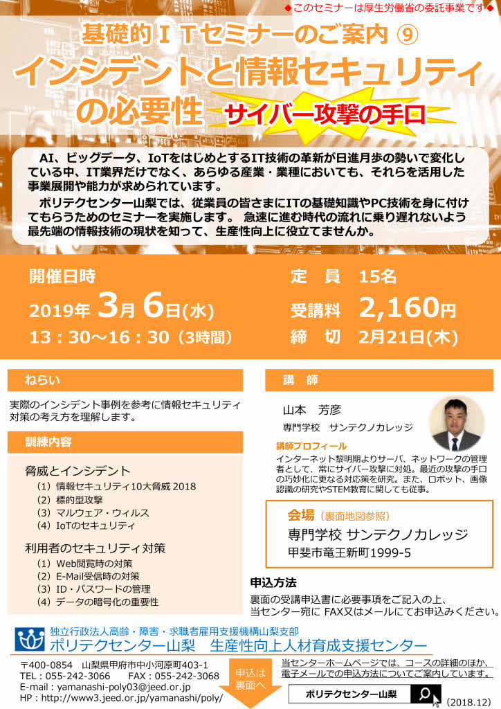 - ポリテクセンター山梨の基礎的ITセミナーに採択